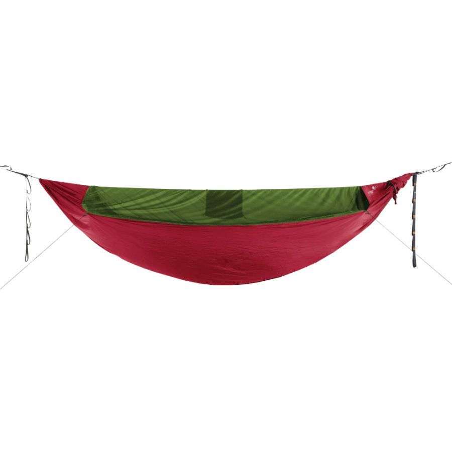 Hängmattan är enkel att sätta upp på mindre än en minut och har en generös längd på 310 cm, vilket ger extra utrymme och komfort, särskilt när man ligger diagonalt. Det stuvbara insektsskyddet är tillverkat av premium micromesh-tyg med 200 hål/cm², vilket ger utmärkt skydd mot insekter samtidigt som det är lätt att andas och skyddar mot vinden.